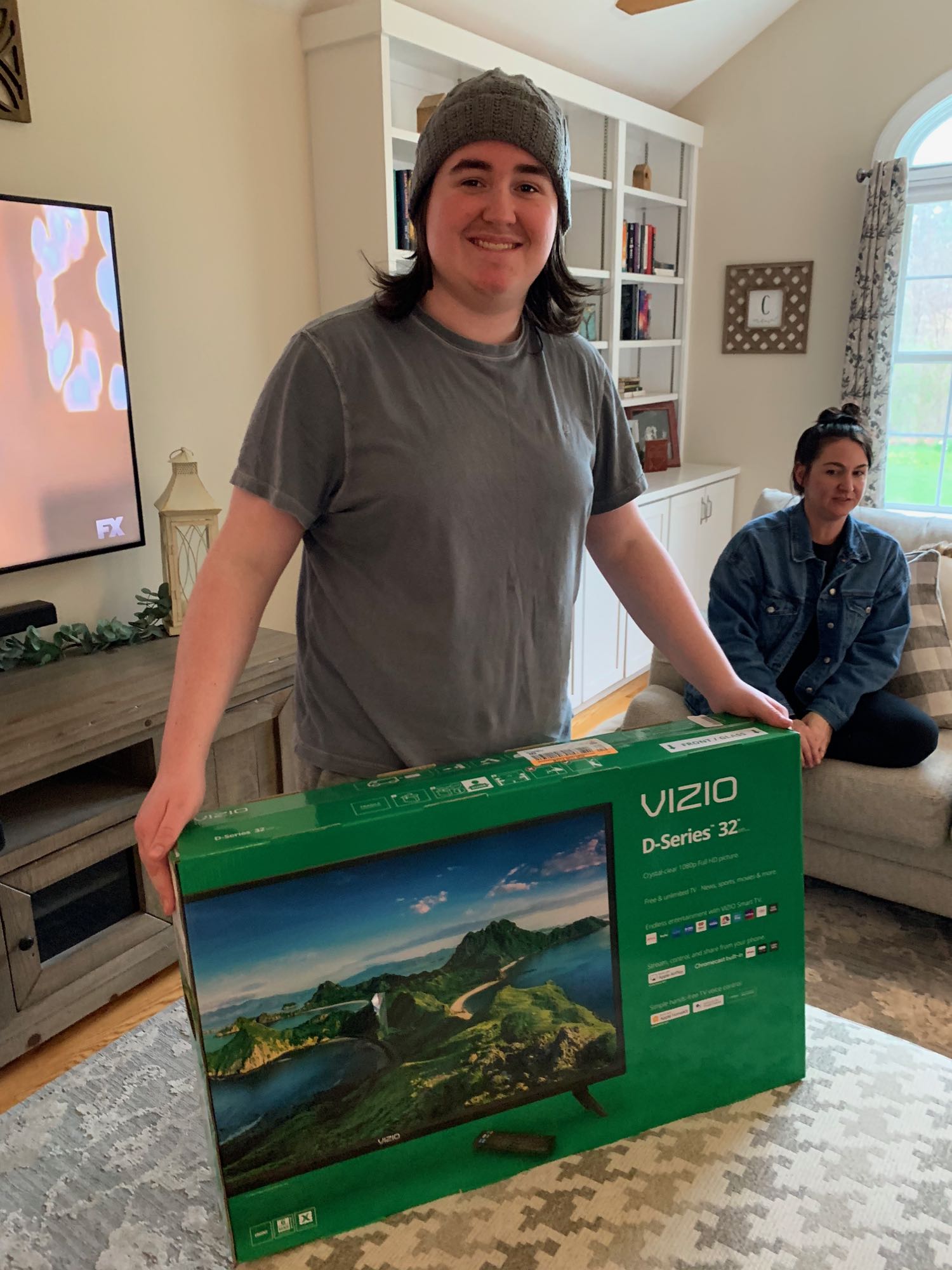 We went inside your house and hung out in the living room and later, the kitchen. We were excited to bring our two presents, your first guitar, and a TV for your new room.