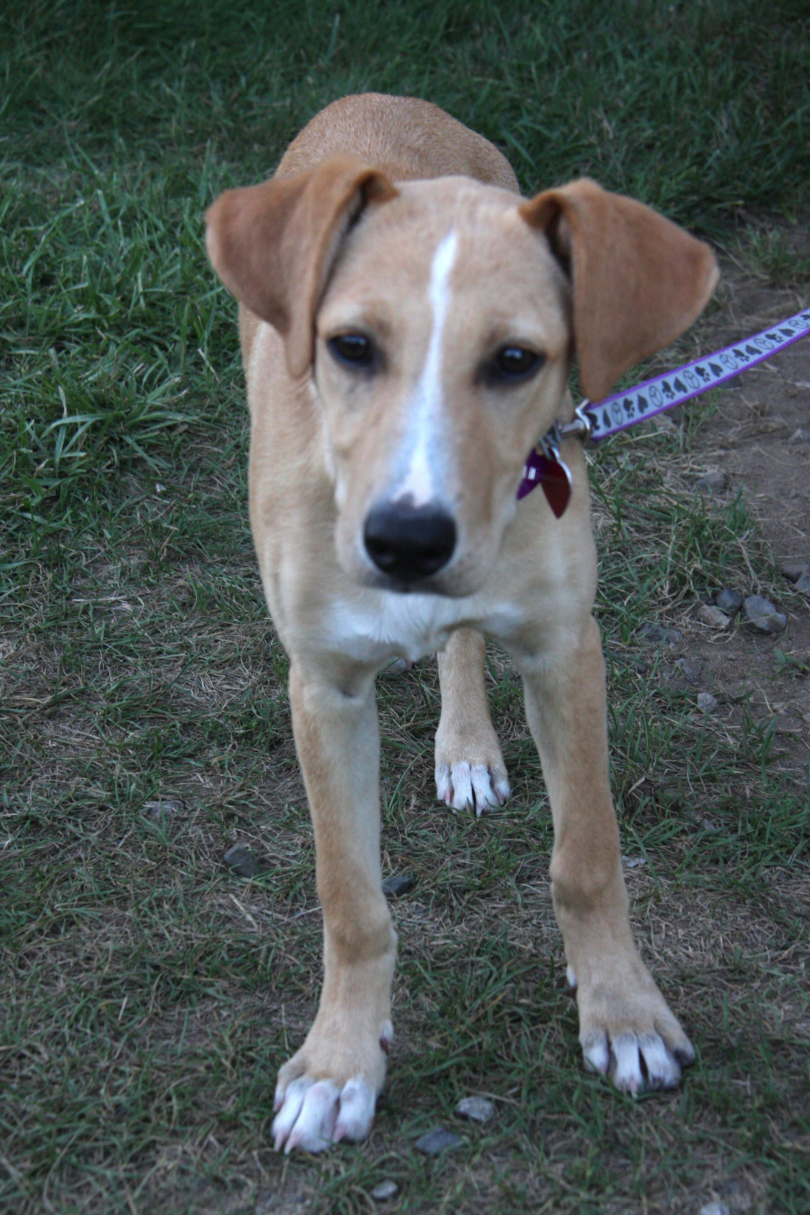 You brought her to the beach today, the day after picking her up in Nashua. She’s a fine looking specimen – light skinned in contrast with Apple’s eager darkness. A distinctive white streak runs from forehead to the tip of her nose. She looks like a combination collie and deer – head like a collie, but gangly body like a deer. She’s only four months old, so we’ll have to see what she turns out to be in final form.